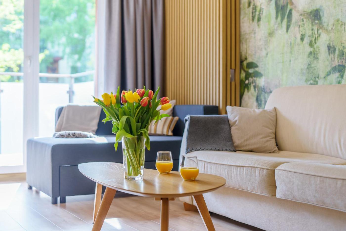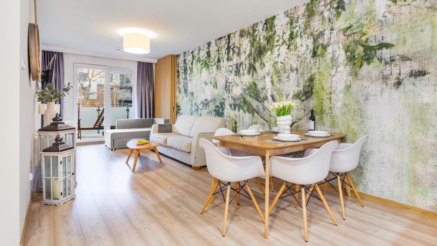 Apartament z 1 sypialnią. Guests will have a special experience as the apartment provides a hot tub. Featuring a private entrance, this apartment consists of 1 living room, 1 separate bedroom and 1 bathroom with a walk-in shower and a hairdryer. Guests can make meals in the kitchenette that is equipped with a stovetop, a refrigerator, a dishwasher and kitchenware. This apartment features a washing machine, flat-screen TV, ancourtyard view, as well as winechampagne for guests. The unit offers 2 beds. Apartament - 4 osobowy. Powierzchnia pokoju ok.: 48 mkw.